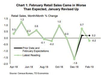 Economic data, though not entirely positive, was broadly supportive. February retail sales undershot market expectations, falling by 0.2% m/m, instead of rising by a commensurate amount. The miss on the sign in the headline print seemed like a cruel April Fools’ joke. But, the hefty upward revision to January mitigates the downside to 19Q1 spending (Chart 1). Proving more constructive was a strong bounce-back in auto sales in March to 17.5 million, after two consecutive monthly declines. But, even with a decent showing in March, first-quarter consumption growth is unlikely to surpass 1% annualized. This soft performance is really no surprise given the drag from ‘residual seasonality’ and the government shutdown.