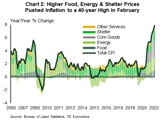 Financial News Chart 2: Higher Food, Energy & Shelter Prices Pushed Inflation to a 40-High in February.
