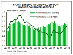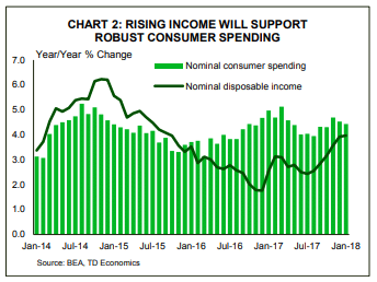 • Both consumption and GDP will start the year on a softer footing but weakness is expected to be short-lived. Tax cuts and tightening labor market will support consumer spending and above-trend growth over the remainder of 2018.