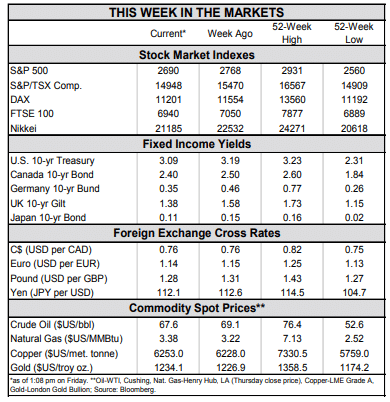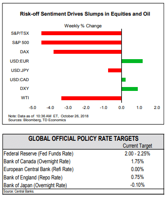 - It was a sea of red in equity markets this week as risk off sentiment set in. As it stands, downturn in October has erased all the stock market gains from the start of the year.