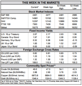 Despite this being a holiday-shortened week, investors had lots to digest, with the lineup including communication from central banks, natural disasters and growing geopolitical tensions. The latter was the dominating factor at the start of the week, with markets opening on a dour note as investors poured into safe haven assets. The dynamic sent gold and Treasuries higher, while also benefitting crude oil. Conversely, long-term yields and the trade-weighted U.S. dollar sustained their downward trends – the latter falling to early 2015 levels.