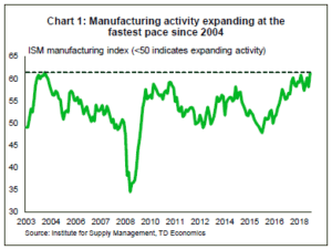 Clearly the U.S. economy is barreling full steam ahead, and the estimated impact of tariffs has so far been quite small. The $50 bn in import tariffs on China and the steel and aluminum tariffs may shave roughly 0.2 ppts off U.S. real GDP growth in about years’ time, and add two tenths of a point to inflation. However, as we note in our report, the tariffs in place are only the tip of the iceberg relative to those under review or threatened. So far the U.S. has levied tariffs on $107 bn of imports into the U.S., but the total tariff action under consideration amounts to $715 bn. If implemented, they could place about 1.2 ppts of U.S. and 0.4 ppts of global growth at risk.